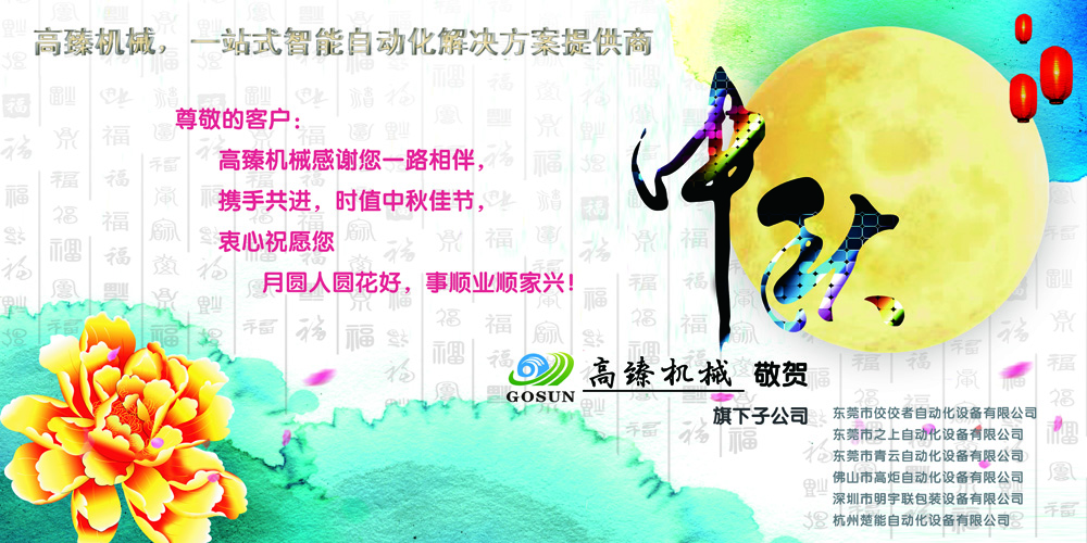 又一輪圓月,在中秋佳節(jié)到來之際,東莞市高臻智能自動化設備有限公司攜全體員工祝大家“做事兢兢業(yè)業(yè),事業(yè)順順利利,好事層層疊疊,心情快快樂樂,身體健健康康,家庭和和美美;做成月餅送給您,中秋節(jié)快樂!”