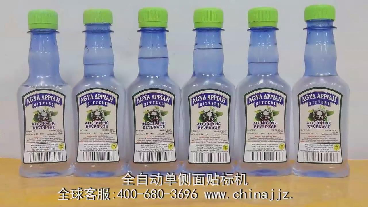 全自動單側面貼標機實例樣品_貼塑料瓶_佼佼者